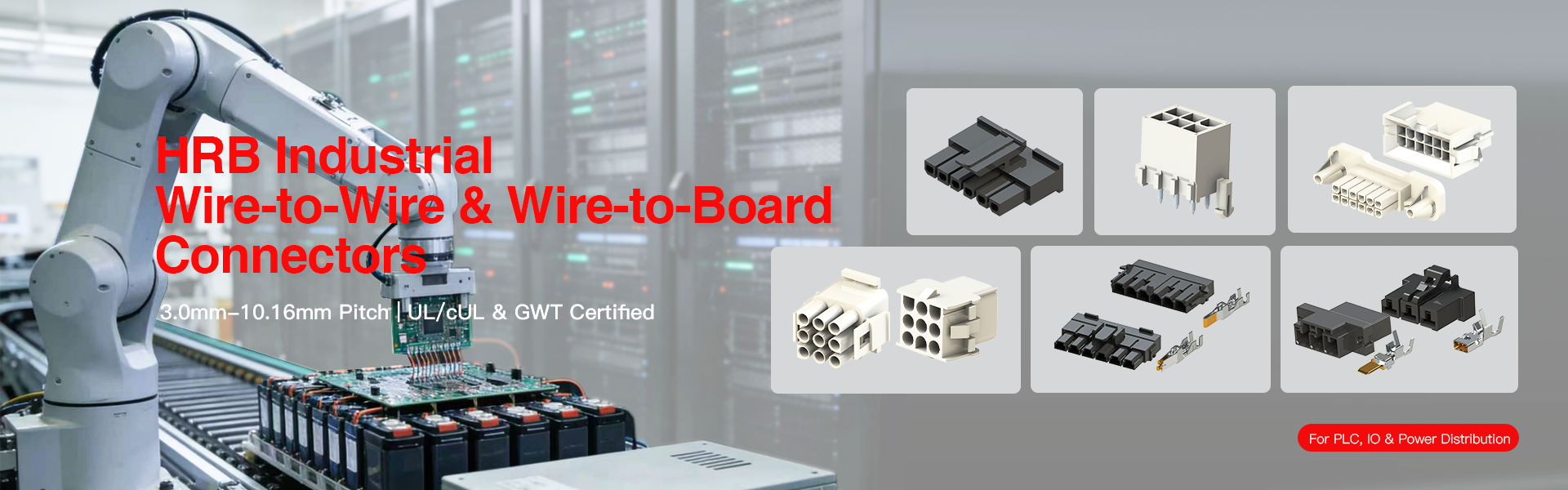 HRB 6.35 pitch-serie is uitwisselbaar, intermateable en intermonteerbaar met industriestandaardproducten. Dit maakt een grotere flexibiliteit mogelijk bij het koppelen met bestaande kabelbomen, connectoren of PCB-headers. HRB-steek 6,35 mm.